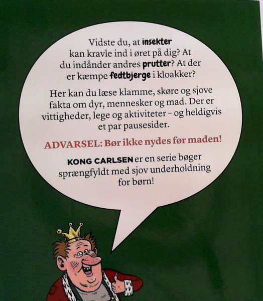 Kong Carlsen - Adr, det er klamt!. Adr, det er klamt! giver læserne et indblik i alle de klamme, mærkelige og ret sjove ting fra den store verden. Der er bl.a. om: Klamme dyr og insekter, mennesker, film, klam mad Pausesider (noget pænt at se på) Klamme vittigheder, klamt toiletbesøg, klamme ritualer Lidt flere pæne pausesider med pæne ting på Klamme opgaver (prik-til-prik, gåder, labyrinter) Og mange andre klamme ting