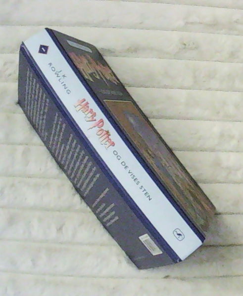 Harry Potter nr. 1. Fantasy. Den 11-årige forældreløse dreng Harry Potter bliver adopteret af sin onkel og tante som ikke bryder sig om ham. Han har trolddomsblod i årerne og bliver optaget på en skole for trolddomskyndige. Her får han nye venner og fjender. På dansk ved Hanna Lützen efter "Harry Potter and the philosopher's stone (1997)". En smule skævlæst.